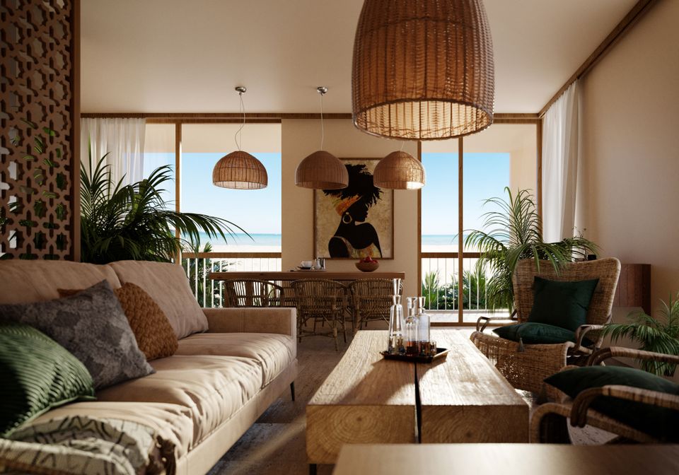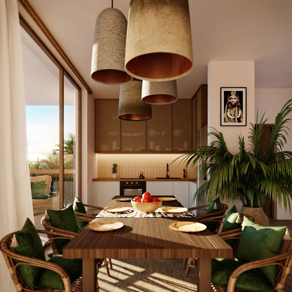 Forma poszczególnych budynków, wysunięte tarasy, głębokie podcienie, ażurowe żaluzje, wszystkie te elementy powodują, że minimalizujemy problem przegrzewania wnętrz, oszczędzając tym samym energię wymaganą do klimatyzowania lokali. W zasadzie każde z nich ma możliwość przewietrzania i z udziałem wiatraków sufitowych jesteśmy w stanie komfortowo użytkować lokale bez udziału klimatyzatorów.